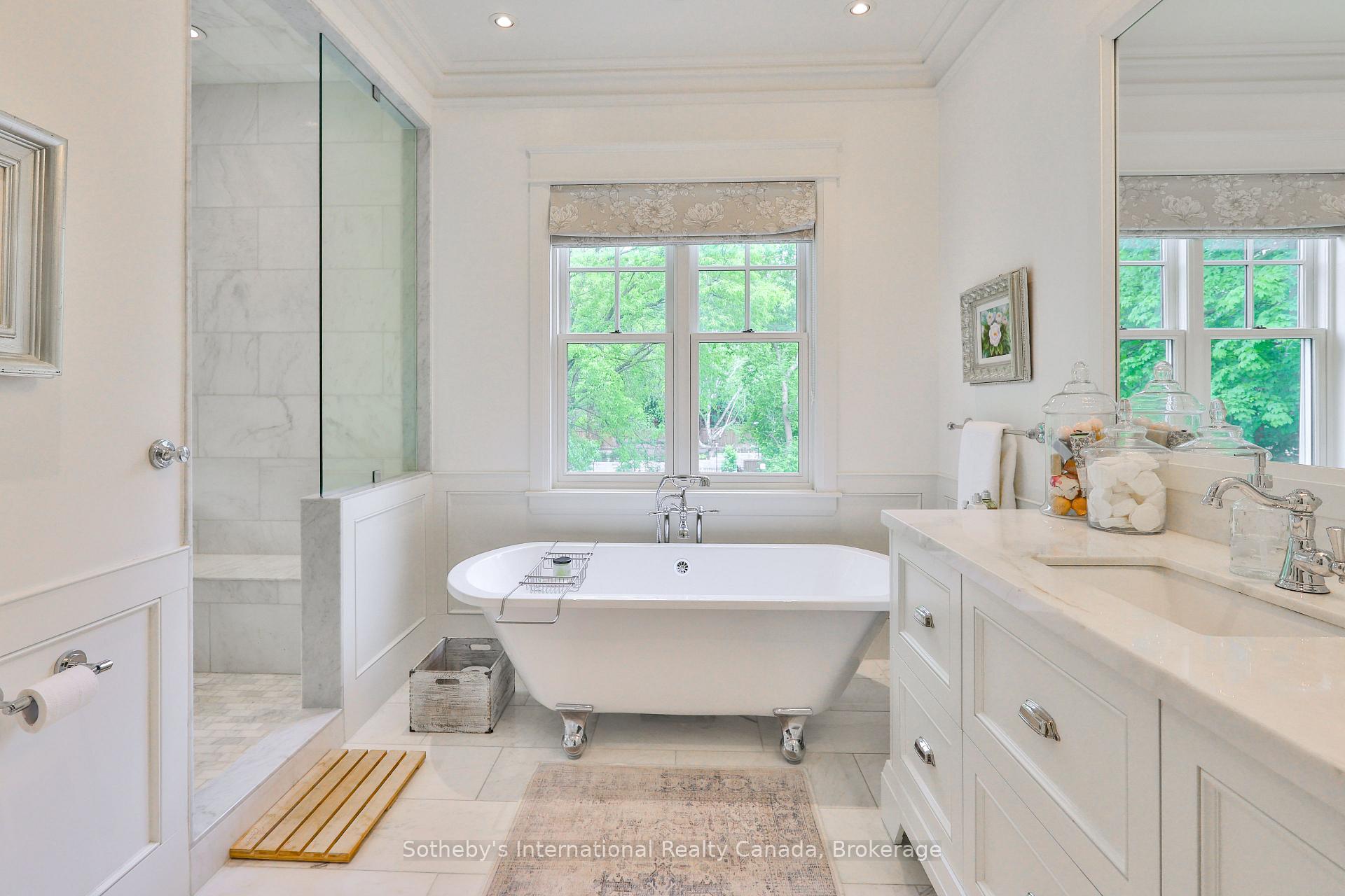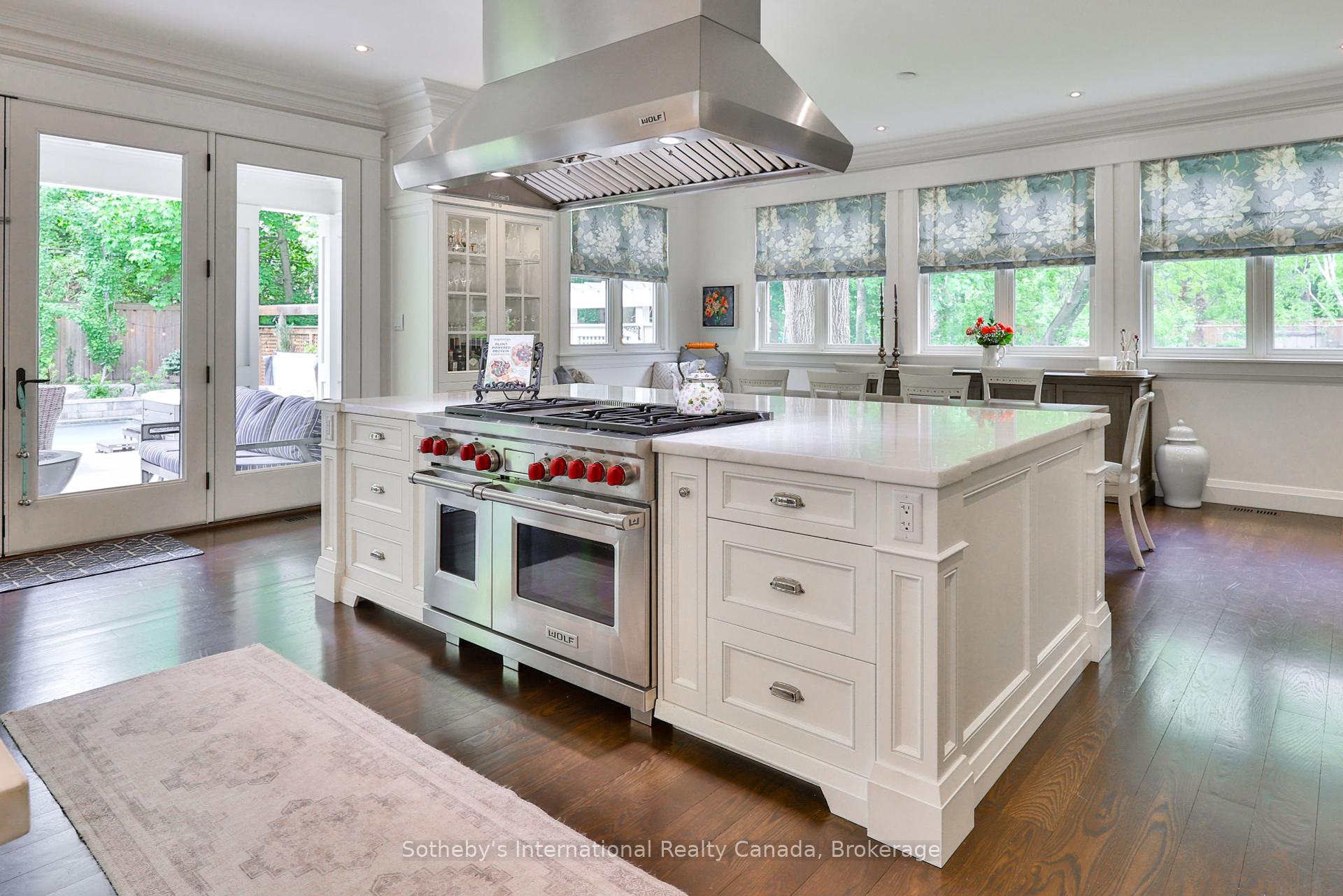 Set on a lush 272 ft deep lot in West Oakville, 438 Fourth Line is a custom-built home offering 5,630 above grade and over 7,200 sq ft of total living space. Surrounded by mature trees and manicured grounds, the striking three-storey residence is introduced by a charming front bridge and a welcoming entry that hints at the thoughtful detail within. Wide-plank oak floors, custom millwork, designer lighting, and expansive windows create a bright, elegant atmosphere throughout. The main level balances sophistication and function, featuring a spacious living room with built-ins and gas fireplace, a stunning kitchen with double islands, honed marble counters, Wolf and Sub-Zero appliances, and a walk-in pantry. A built-in wine display elevates the dining room, while a private office, powder room, and mudroom complete the floor. Upstairs, the light-filled primary suite boasts a private balcony, two walk-in closets, and a six-piece ensuite with dual washrooms and a central walk-through shower. Two additional bedrooms, each with a walk-in closet and ensuite, along with a well-appointed laundry room, complete the second floor. The third-level loft is an expansive, light-drenched space with soaring ceilings, a fourth bedroom, and a five-piece bath. Whether as a teen retreat, studio, home office, or guest suite, the loft offers exceptional flexibility for changing needs and lifestyles. Outside, French doors open onto a covered deck overlooking the professionally landscaped backyard, complete with a large pool. At the front of the property, a natural creek winds through the garden, adding a unique sense of peace and privacy. Just minutes from the lake, downtown Oakville, and top-rated schools, this is a home of scale, style, and versatility.